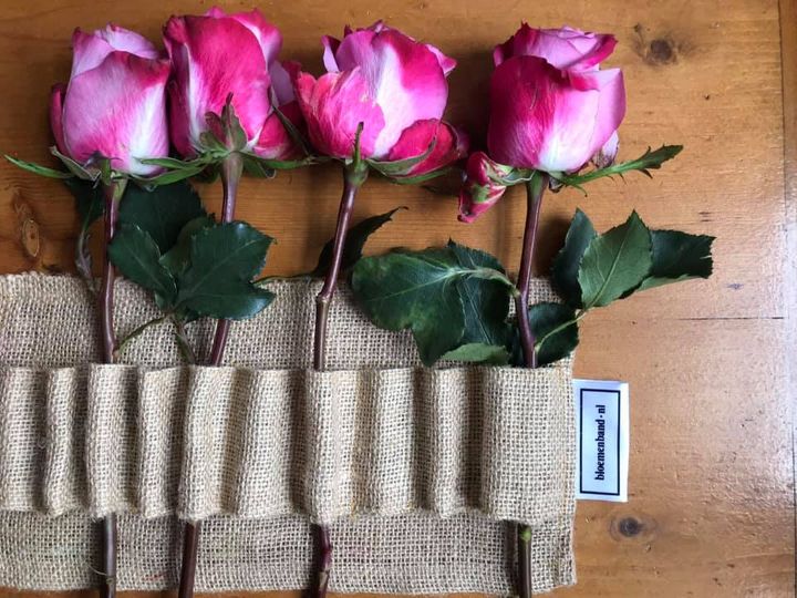 Steeds vaker wordt er gekozen voor losse bloemen in plaats van een rouwstuk. Deze kunnen tijdens de rouwbezoeken en uitvaartplechtigheden verzameld worden in vazen of los op de kist worden gelegd. Jantine heeft een prachtig alternatief bedacht. Een bloemenband die je om de kist kunt binden. De band is voorzien van ongeveer 200 lussen in diverse maten zodat er voor ieder bloemsoort wel een lusje is.