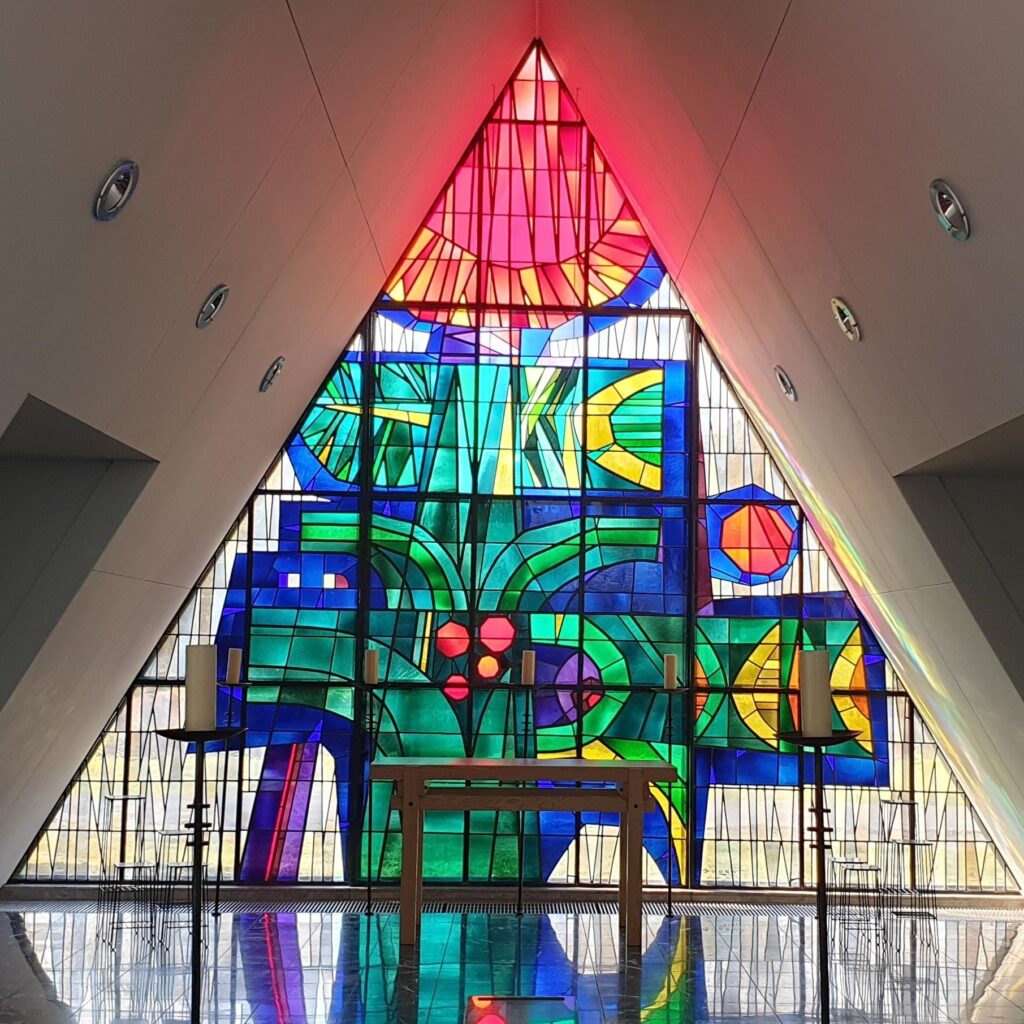 De zon scheen prachtig door de bijzondere glas-in-loodramen.